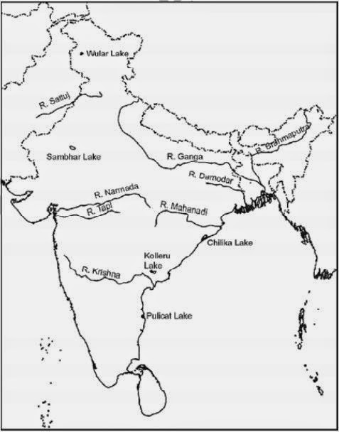 (ii) On an outline map of India mark and label the following lakes: Chilika, Sambhar, Wular, Pulicat, Kolleru.