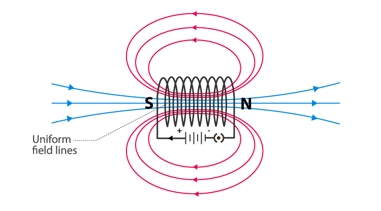 • Like a bar magnet, one end of the solenoid has N-polarity while the other end has S-polarity.