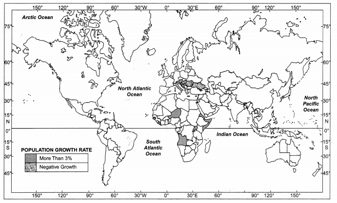 Ans :-  If the population decreases between two points of time it is known as negative growth of population. It occurs when the birth rate falls below the death rate or people migrate to other countries.