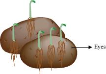 The surface of a potato has several buds called eyes. Each of these buds when buried in soil develops into a new plant, which is identical to the parent plant.