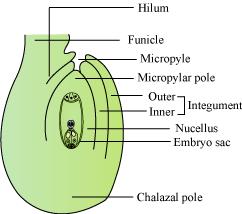 - In the nucellus of ovule, a large oval cell is present at micropylar end, which is known as embryo sac (female gametophyte), which develops from the megaspore.