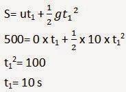 Q13. A stone is dropped from the top of a tower 500 m high into a pond of water at the base of the tower. When is the splash heard at the top? Given, g = 10 m s−2 and speed of sound = 340 m s−1.