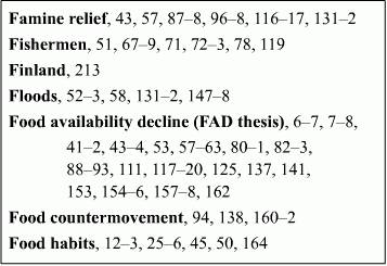Q2. To know what ‘Food Security’ and ‘Minimum Support Price’ mean in the context of the economic growth of a country you can go to the subject index given below from Poverty and Famines — An Essay on Entitlement and Deprivation by Amartya Sen. Under which heading in the index are you likely to find these topics?