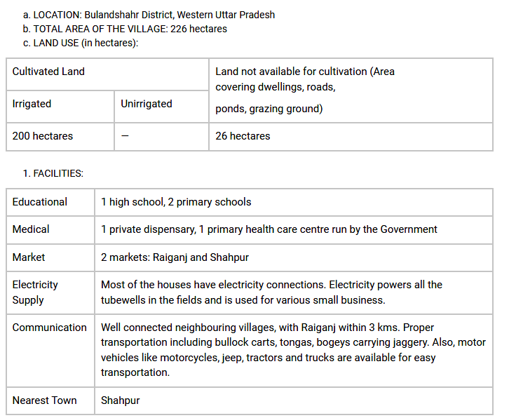 Q1. Every village in India is surveyed once in ten years during the Census and some of the details are presented in the following format. Fill up the following based on information on Palampur.