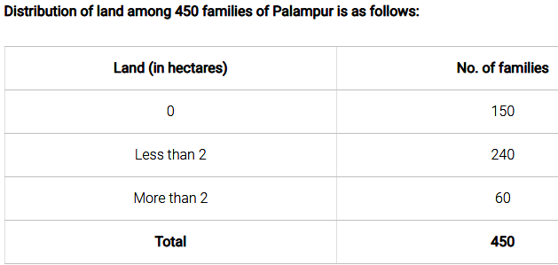 Q5. Construct a table on the distribution of land among the 450 families of Palampur.